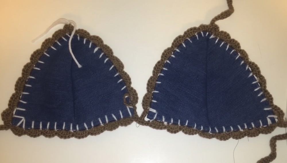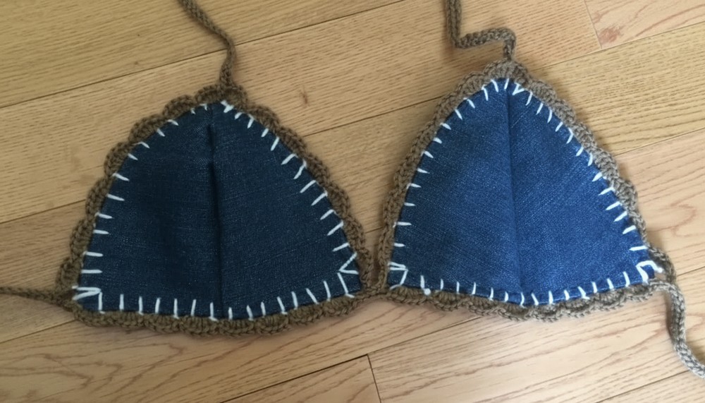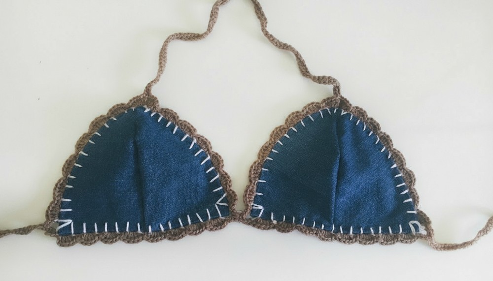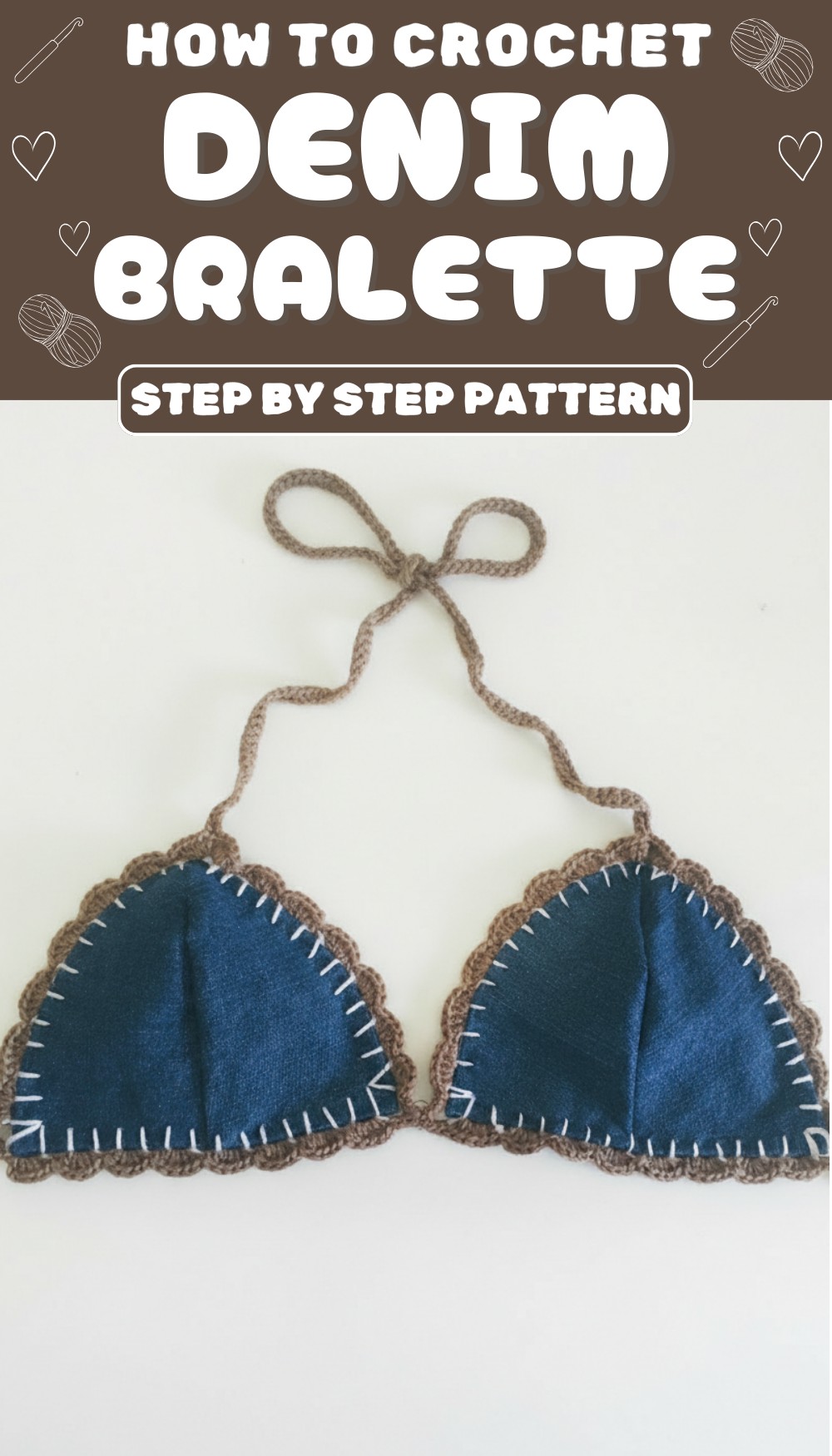 - Bralette Size: Increase or decrease the size by making larger or smaller denim cups and adding or reducing rows of shell stitches.