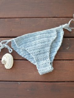 - At the bottom center of the bralette, ch 100 stitches (or more, depending on your desired strap length).