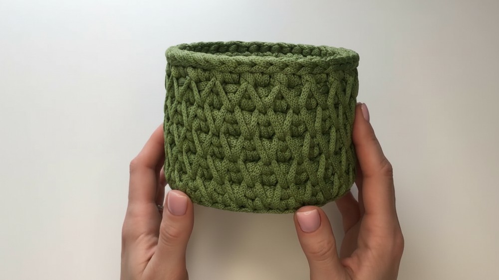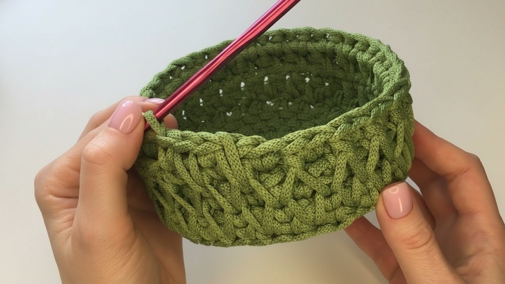 These stitches not only enhance the look but also improve the basket’s strength, helping it keep its shape without collapsing. The pattern often works in rounds, making it easy to adjust the size depending on your needs.