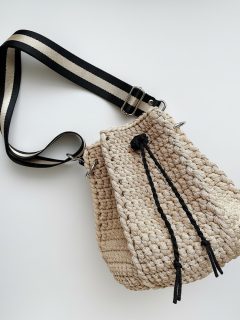 Yarn: Approximately 70 meters of 5mm “Caramel” polyester cord (you can also use T-shirt yarn or jute).