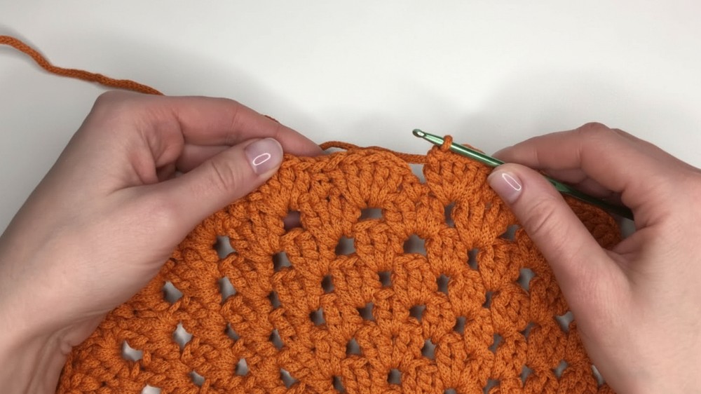 - In large holes, crochet 5 double crochets (dc), spaced evenly.