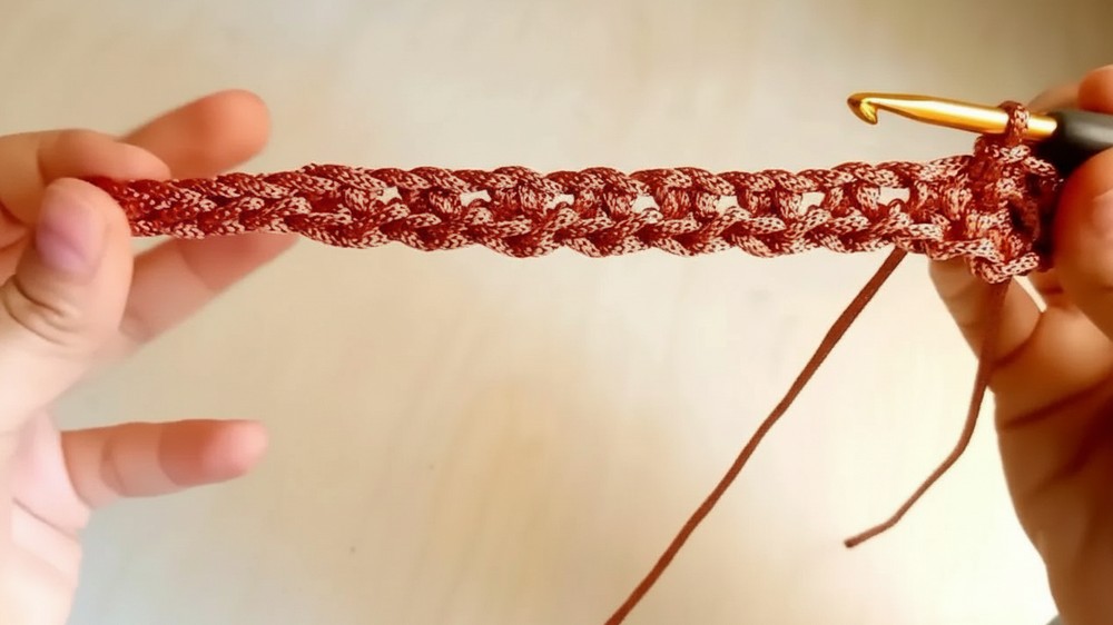 - Complete the row by crocheting 10 units and finishing with 5 slip stitches.