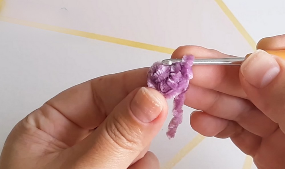- Plush amigurumi thread (grape color used in the tutorial, though alternatives are fine).