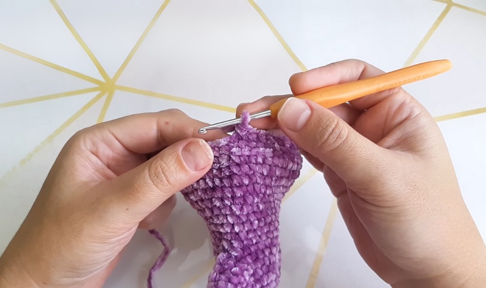 By Row 3, a blend of single crochet stitches and consistent increases results in a smooth expansion, leading to 24 stitches by Row 4. Mid-pattern details, such as the inclusion of 42 stitches by Row 7 and meticulous work on back and front loops, reflect the gradual transition from shaping the body to the detailed joining points for tentacles.