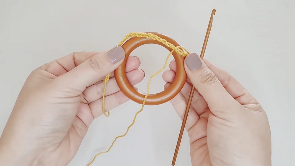 - Ch 25 or enough chains to cover half of your ring tightly. Adjust the chain count for a larger or smaller ring.