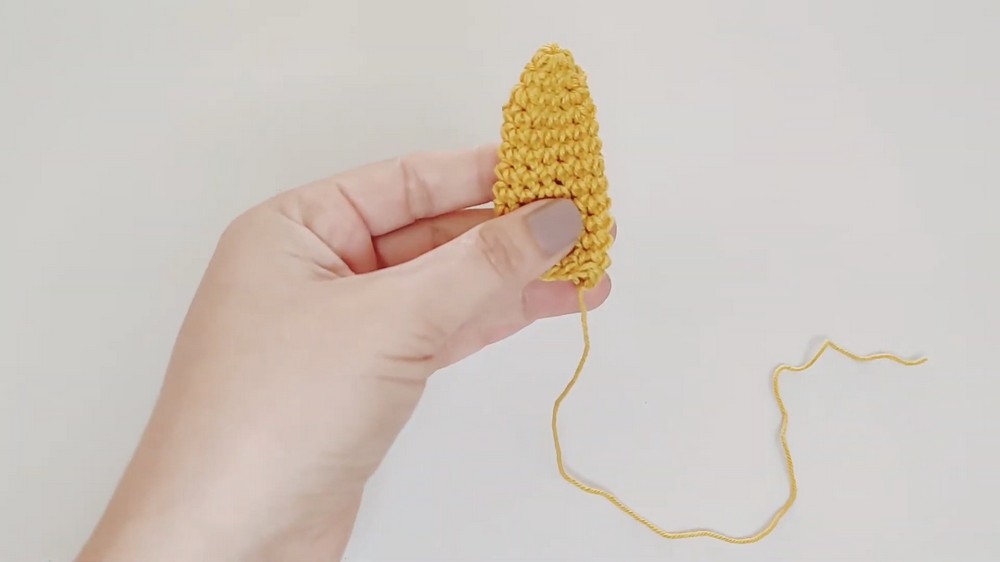 - Tidy up loose threads by weaving them into the base of the ears securely. Trim excess yarn.