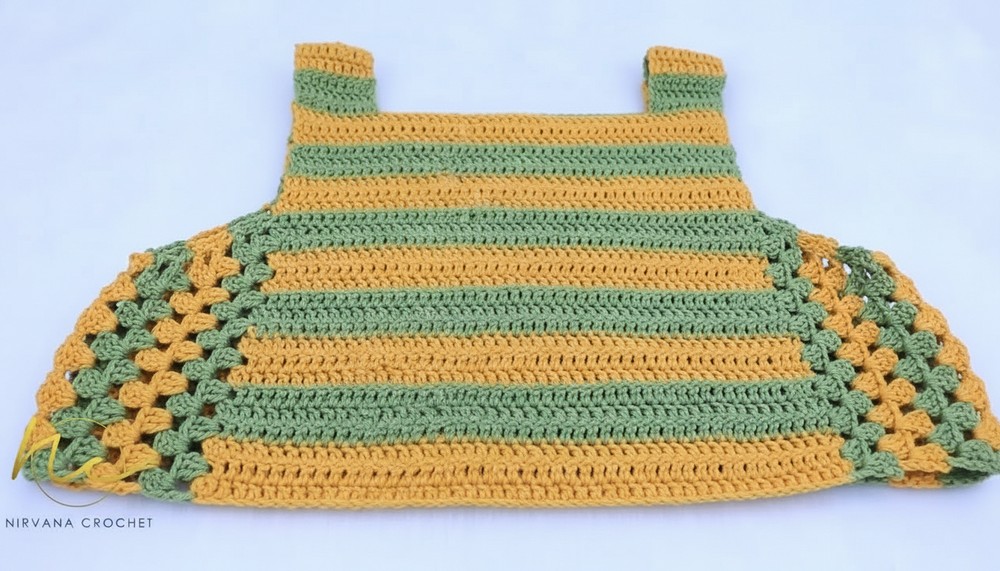 - For neckline and armholes, work single crochet or a simple slip stitch border for clean edges.