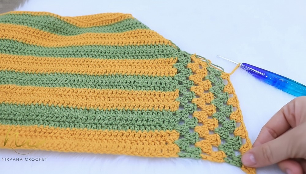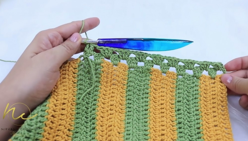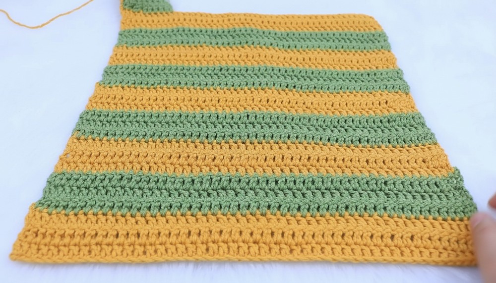 - Continue alternating colors every 3 rows (or desired stripe thickness).