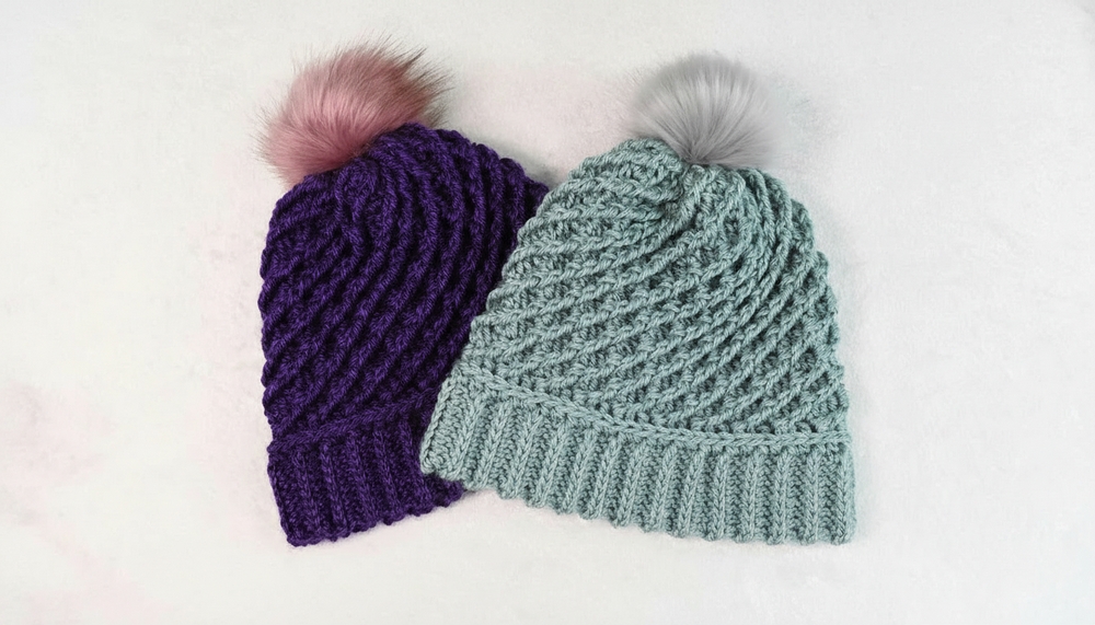 The ribbed band, worked in the third loop of stitches, ensures a snug fit, while the twisted pattern on the body of the hat creates a beautiful, textured effect. It’s fully customizable, allowing you to adjust the size, slouchiness, or even add a detachable faux fur pom-pom for extra flair.