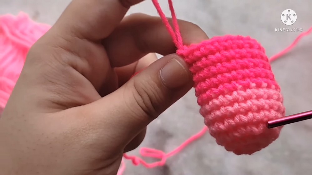 • Color Change: At the end of Round 6, switch to the second yarn color and continue with single crochet rounds (7 to 11).