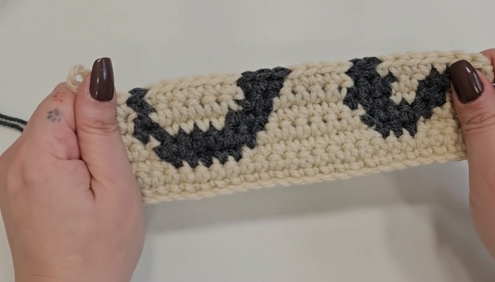 Ensure proper tension when transitioning between colors to maintain the scarf’s symmetry. A slightly looser tension with thicker yarn will allow the design and embroidery to stand out beautifully.