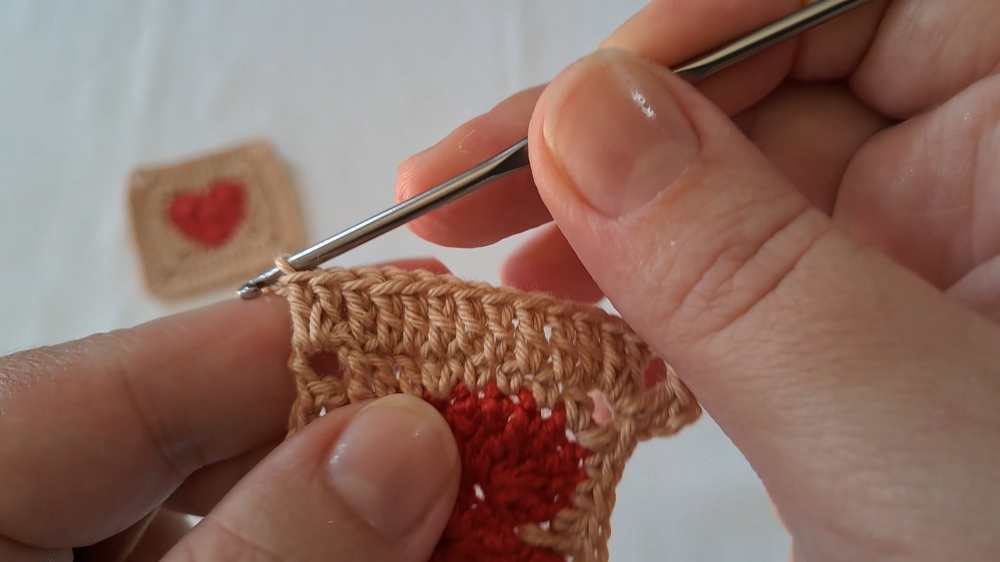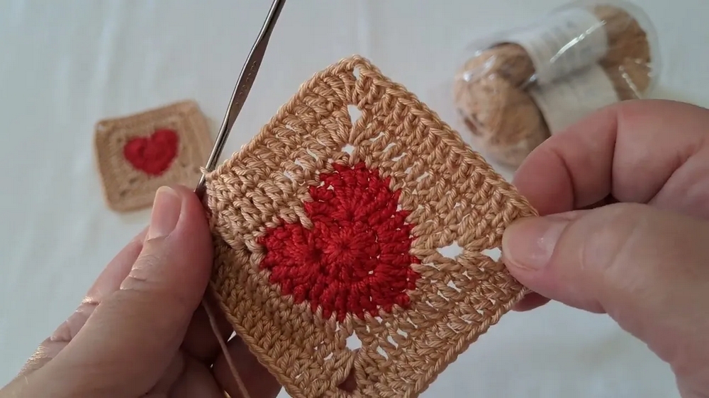 While working on the granny square, ensure you count your stitches accurately, especially in the corners, to avoid losing symmetry, which is crucial for the design. If you’re a beginner, practice the basic granny square technique first before attempting the heart motif.