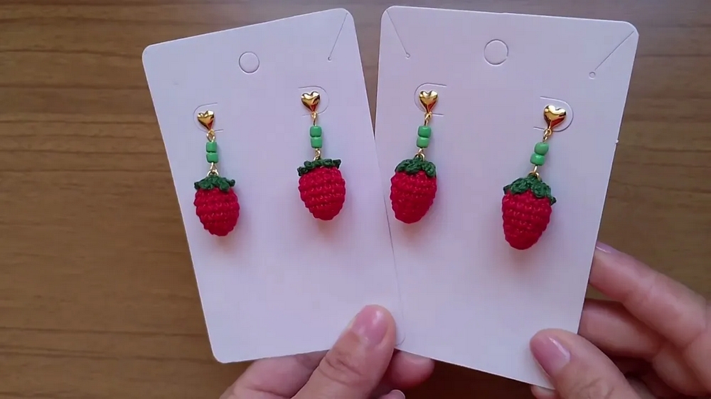 The strawberry earring tutorial demonstrates how creativity and simplicity can combine to create a delicate and elegant piece. This charming accessory can be personalized and has commercial value. With patience and practice, you can perfect this design and use it to explore other similar projects in crochet jewelry.